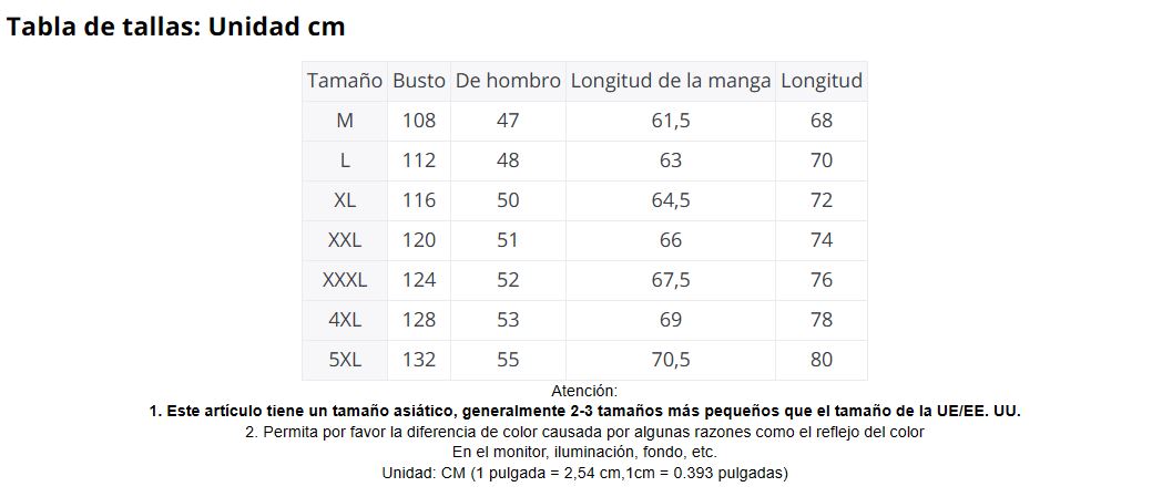 NOTA: Consulta la tabla de tallas, y considerar al menos 2 tallas más, debido a que son de origen asiático