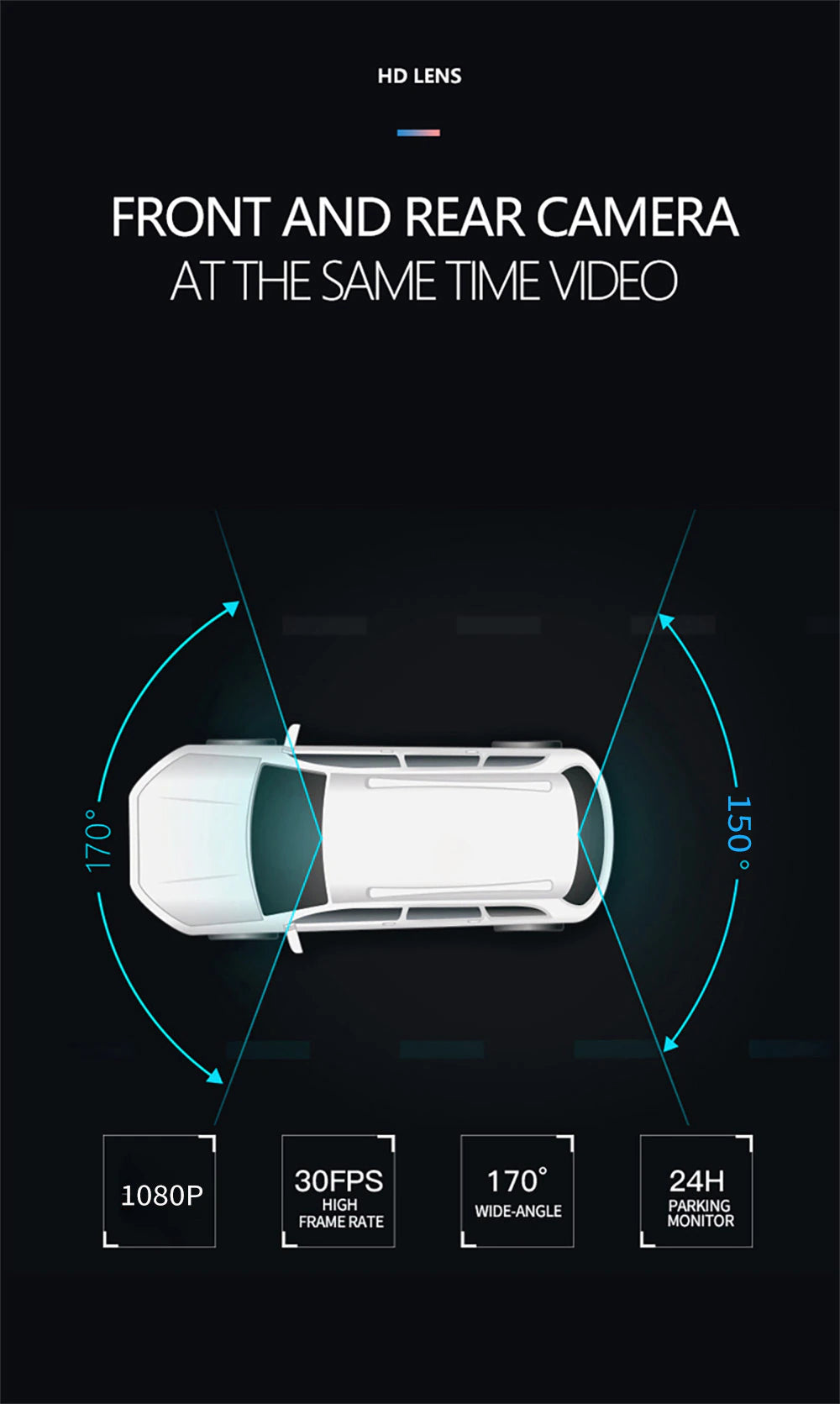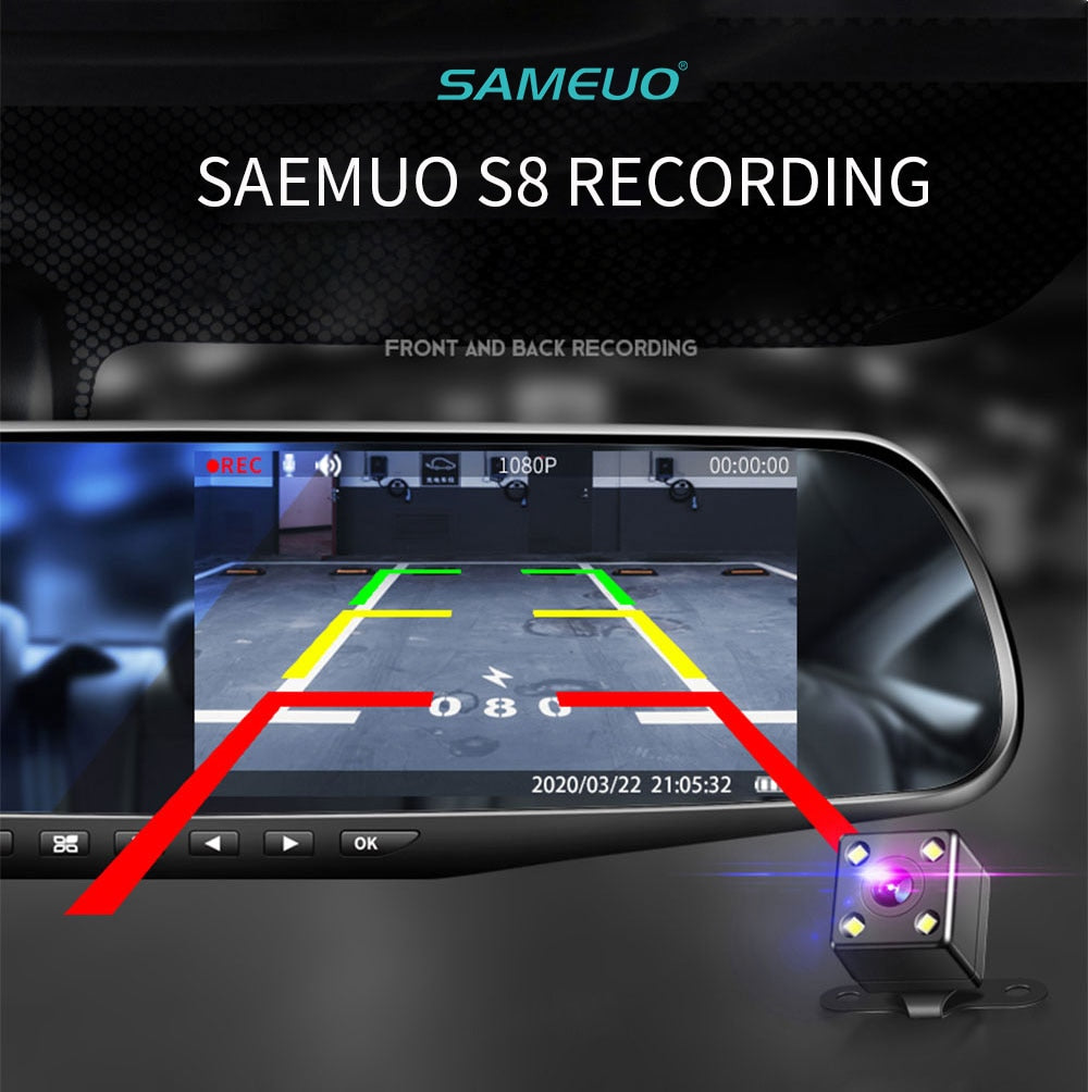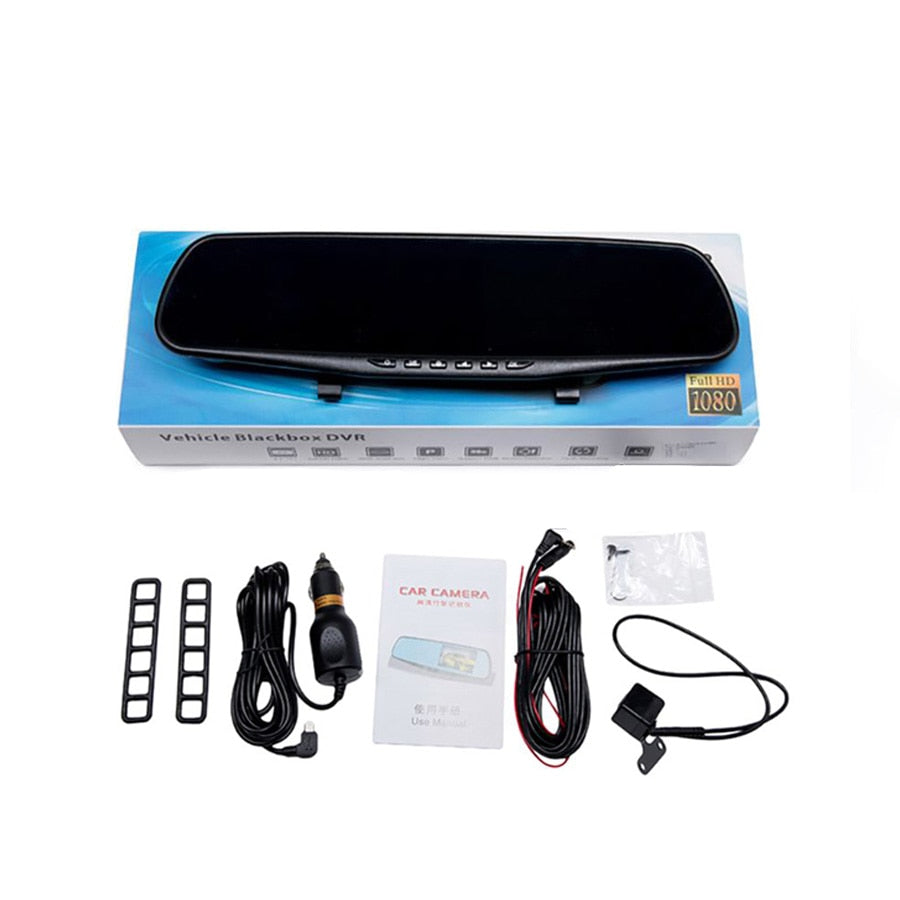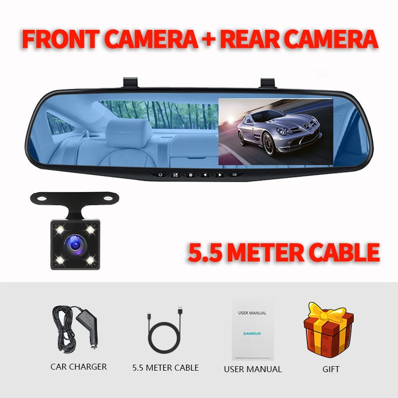Espejo retrovisor con cámara, grabadora de vídeo frontal, trasera y visión nocturna