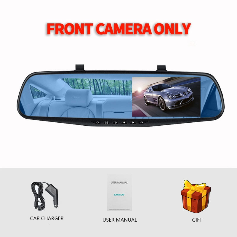 El espejo retrovisor con cámara y grabadora de vídeo de 4,3 pulgadas ofrece una visión nocturna superior para una conducción segura. Esta cámara con doble vista frontal y trasera graba en alta definición, permitiendo a los conductores capturar cualquier situación desde dos ángulos diferentes.