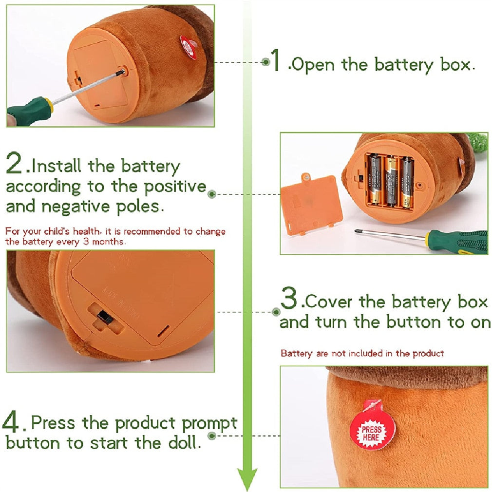 Diviértete con el Juguete de Cactus eléctrico de 32 cm. Disfruta de 120 canciones almacenadas, en español e inglés, para cantar y bailar con tus amigos. El tamaño perfecto para pasar horas de diversión.