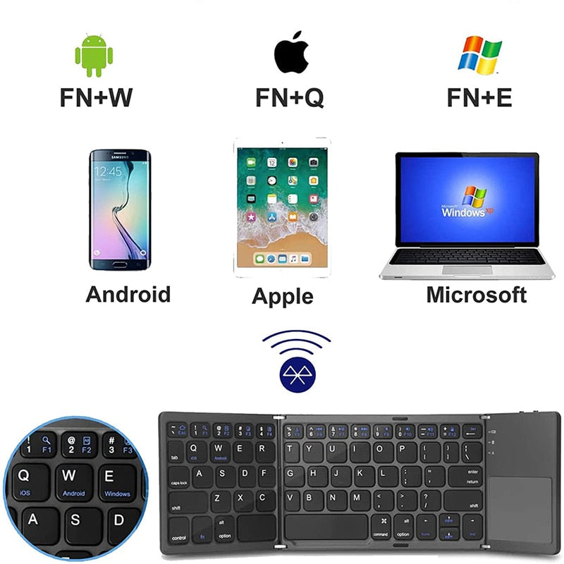Teclado plegable (Español), Bluetooth para iPad, Android, Windows, iOS, con panel táctil